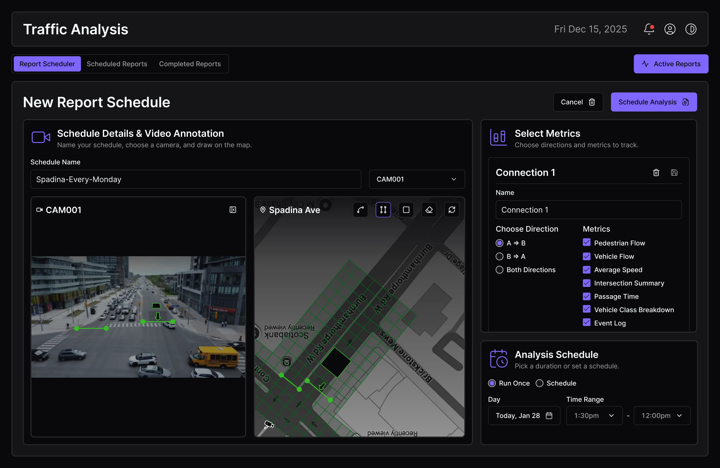 Building on the Vaughan deployment, AirMatrix is introducing its AI-powered traffic camera, capable of performing real-time analytics on highways, intersections, and urban corridors. The system brings Libra’s intelligence to fixed infrastructure, giving cities continuous visibility without new hardware complexity.