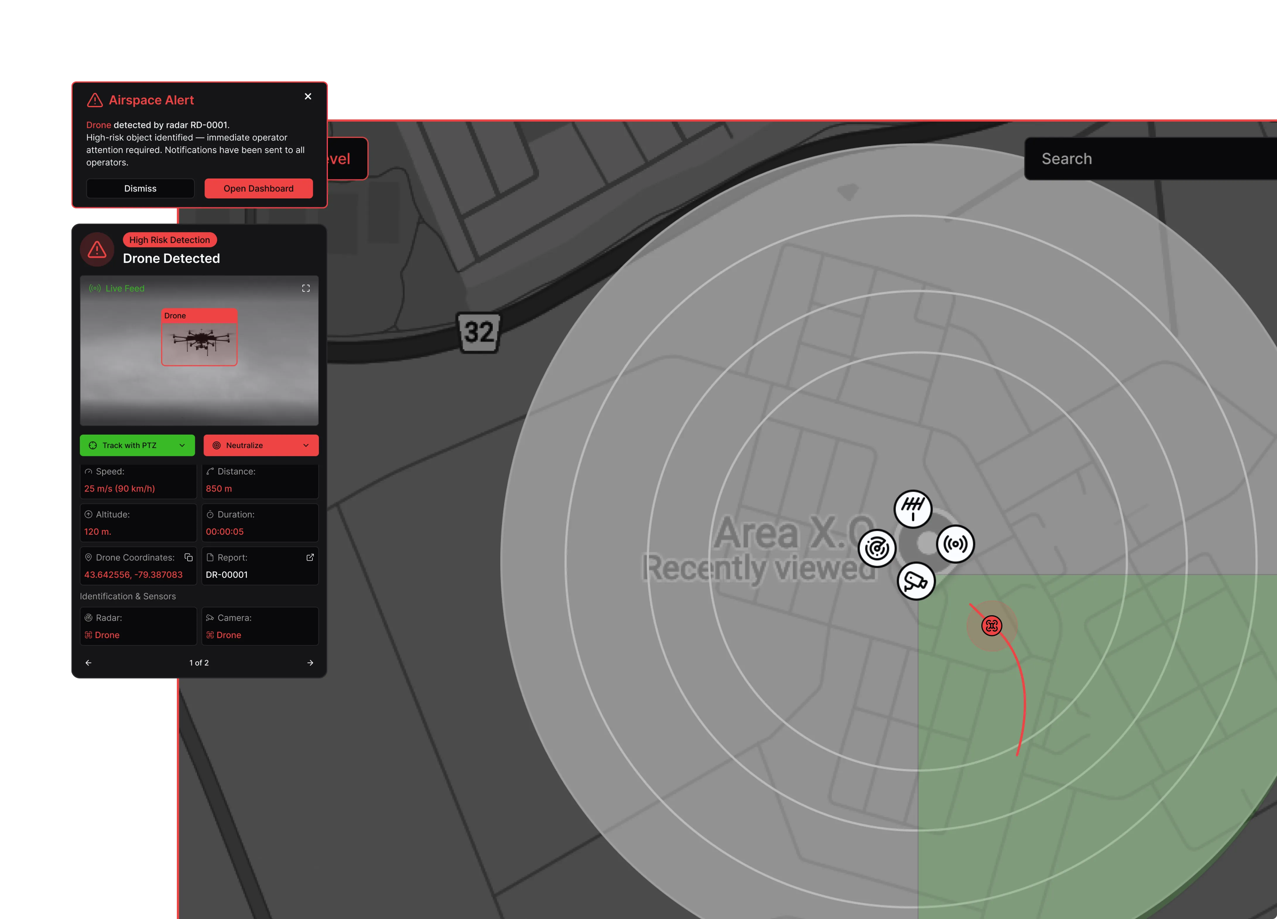 Deployed at Forward Defense Command to counter unauthorized aerial incursions using Libra’s AI-driven detection and response system. Enabled full perimeter awareness with live radar, RF, and optical fusion for rapid neutralization.
