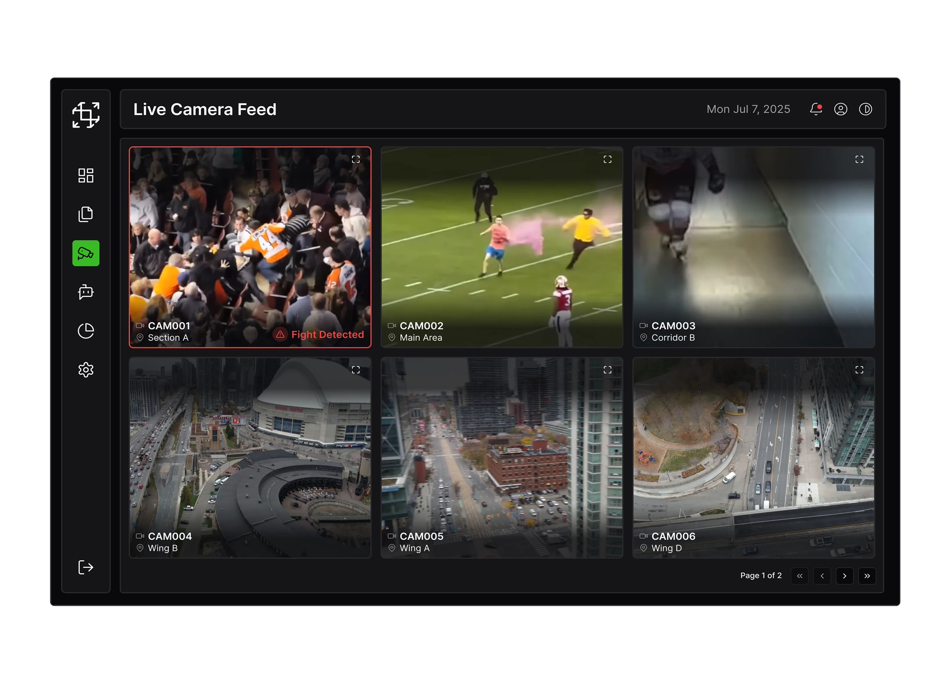 Enable live monitoring of crowds, entry points, and incidents during games or concerts, supporting faster and more coordinated response.