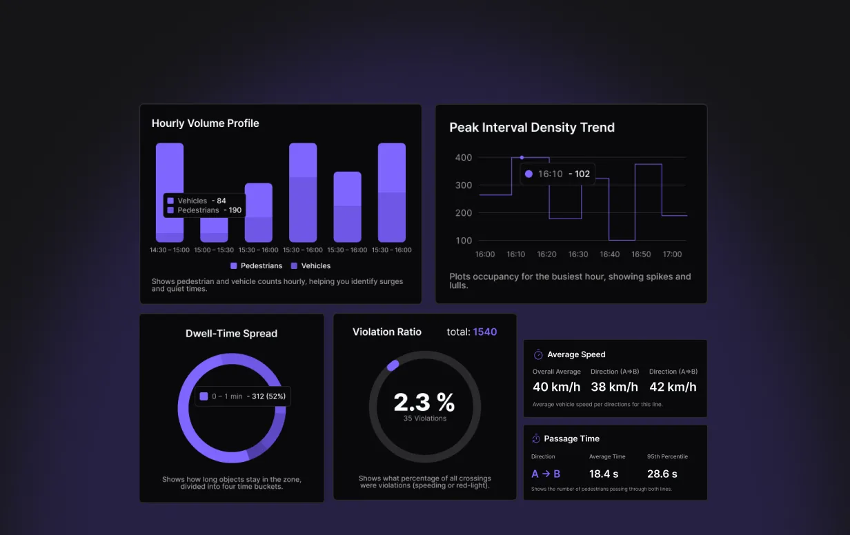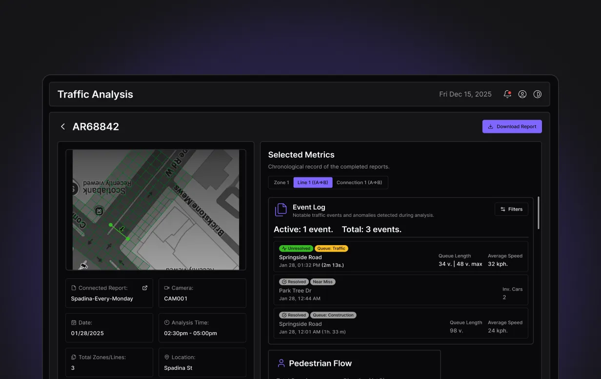 Aether unifies data from existing cameras and sensors into one live feed, providing full visibility and accurate vehicle counts.